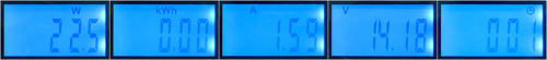 ソーラーパネルと充電式バッテリーなどの間に差し込むだけで、現在の発電量を調べることができ、さらに累積の発電量を記録することができるため、1日や今月の発電量の記録をとることができます。 表示できる数値は、現在の電力量(W)、累積発電量である積算電力量(kWh)、現在の電流値(A)、現在の電圧値(V)、累積稼動時間(h)と多彩です。